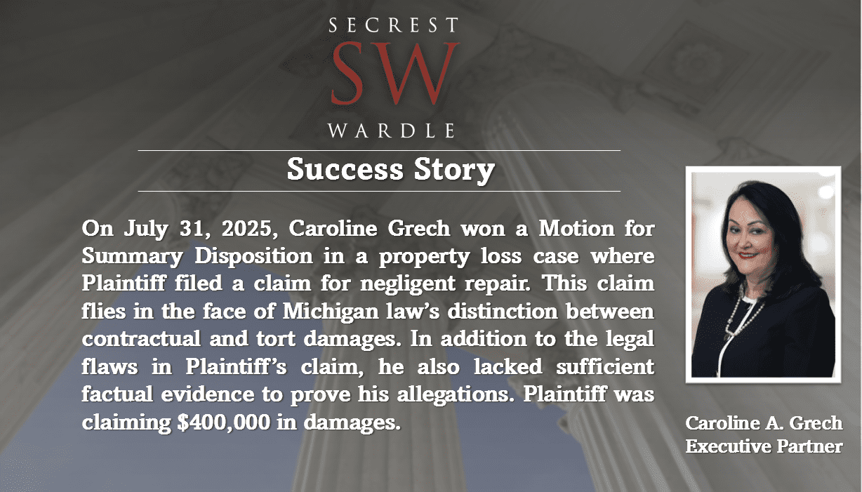 Attorney Caroline Grech Wins Motion for Summary Disposition in Property Loss Case