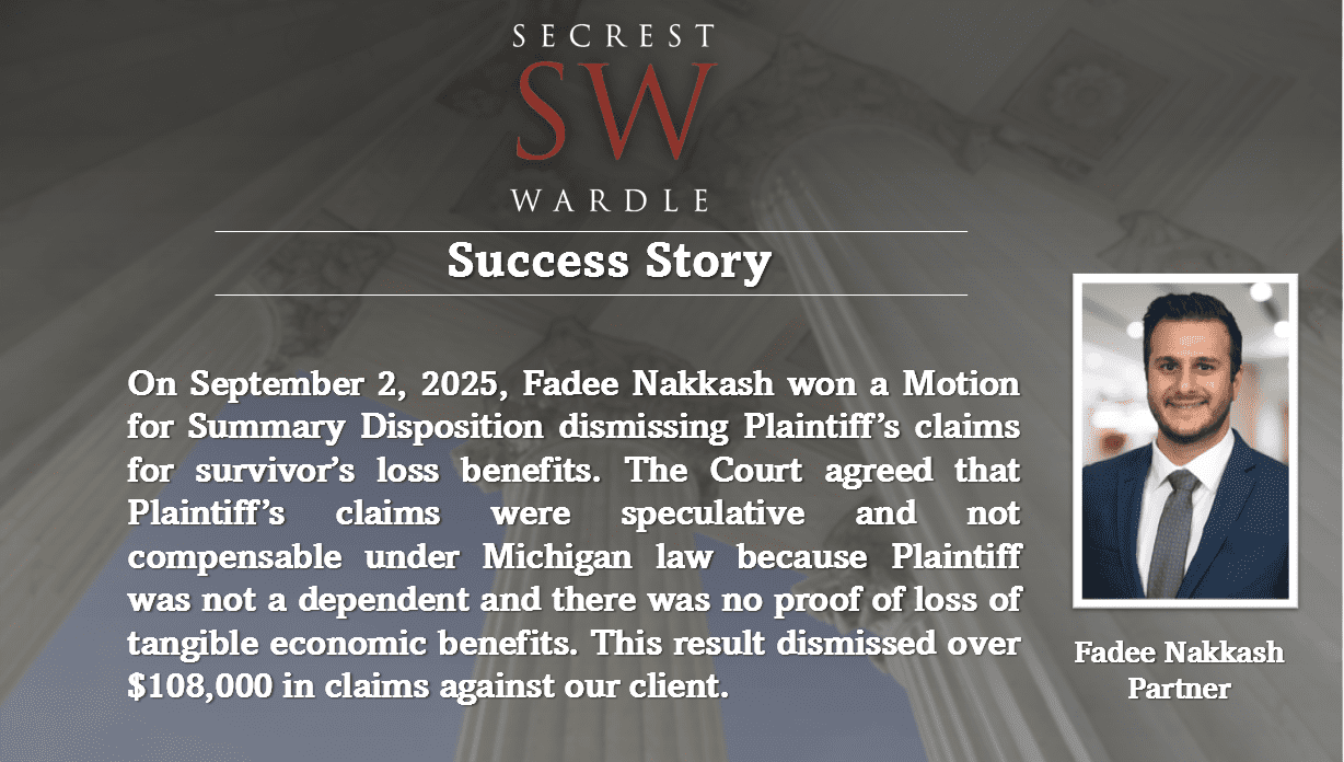 Attorney Fadee Nakkash Wins Motion for Summary Disposition Dismissing Survivor’s Loss Claim