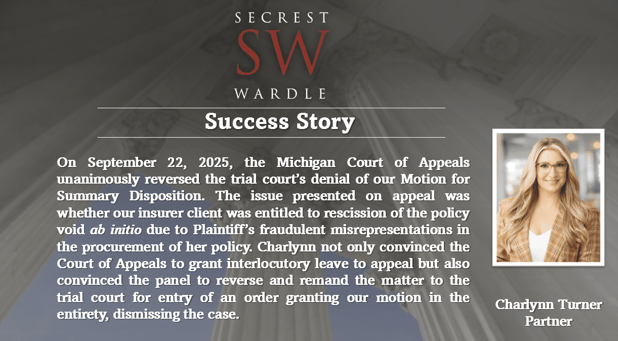 Secrest Wardle Attorney Wins Reversal in Court of Appeals