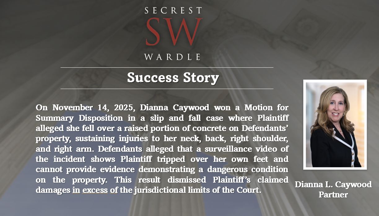 By svertel@secrestwardle.com | February 18, 2026 | Comments Off on Concrete Claim Crumbles: Summary Disposition Granted as Video Disproves Property Hazard