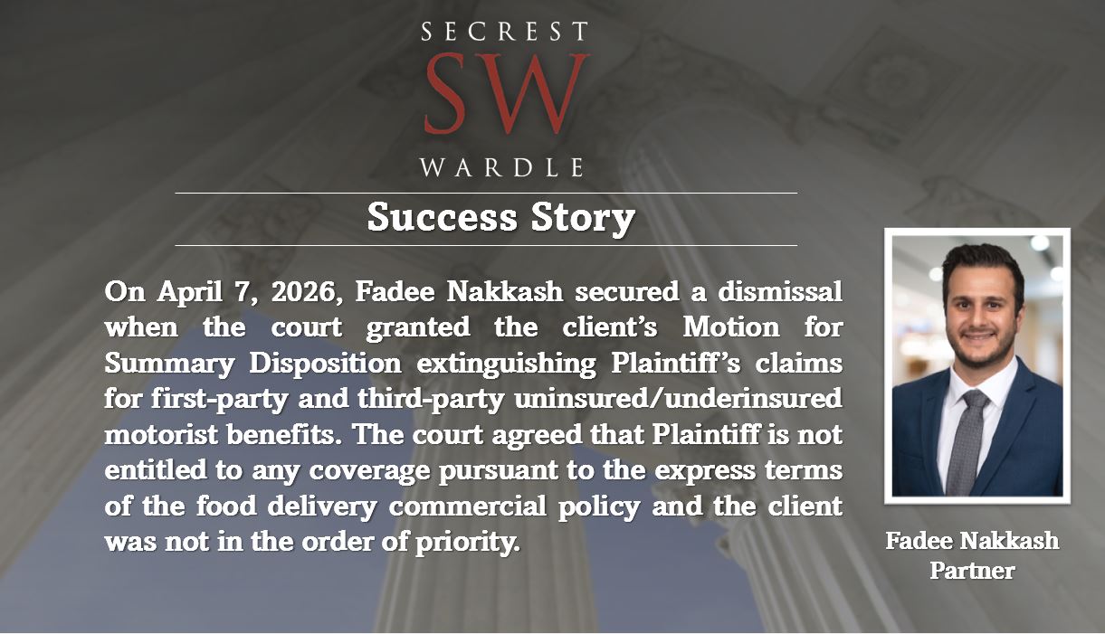 Court Dismissed First-Party and UM/UIM Claims Under Commercial Policy’s Terms By svertel@secrestwardle.com | April 8, 2026 | Comments Off on Court Dismissed First-Party and UM/UIM Claims Under Commercial Policy’s Terms Click here for more details: https://bit.ly/4c93D0z